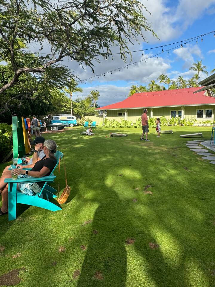 As you step into our condo, you’ll find yourself in a tranquil paradise. The open-plan living area is furnished with comfortable seating, vibrant boho decorations, and bathed in natural light. The kitchen, fitted with stainless steel appliances and quartz countertops, is fully equipped for you to create delicious meals. Enjoy dining indoors or take your meal out to the private lanai, which seats four, and soak in the tropical breeze. Bedrooms & Bathrooms • Master Bedroom: A serene haven featuring a king-size bed, premium linens, and a private bathroom with a walk-in shower and double vanity. • Second Bedroom: This delightful room houses a queen-size bed, soft bedding, and provides easy access to the second bathroom, fitted with a bathtub/shower combination. Location Our condo is strategically located in the stunning Waikoloa Resort area, nestled amidst a Robert Trent Jones Jr. golf course and just around the corner from the new Waikoloa Plaza, which boasts a variety of shops and restaurants. Breathtaking beaches and a diverse range of shopping and dining venues are also nearby. A short drive will take you to the renowned Anaeho’omalu Bay (A-Bay), perfect for snorkeling, paddleboarding, or simply lounging on the beach. Guest Access Guests have unrestricted access to the condo and its amenities, including the communal pool, hot tub, and BBQ area within the condo complex. Interaction with Guests While we respect your privacy, we are readily available to address any questions or concerns during your stay. Our aim is to ensure your Hawaiian vacation is as enjoyable and hassle-free as possible!