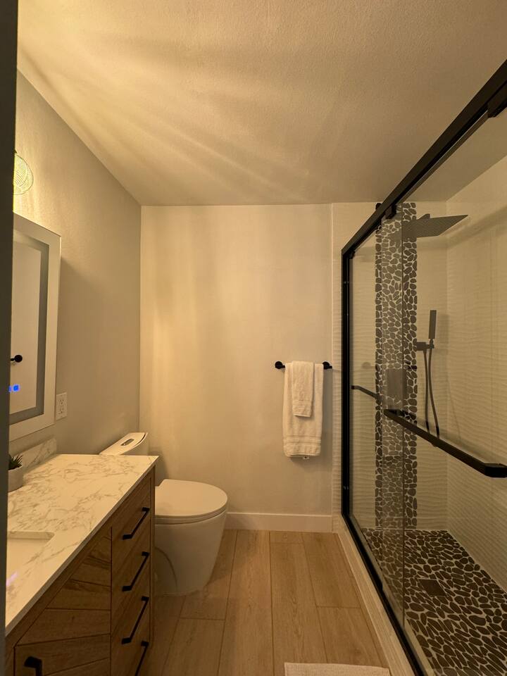 Excellent rental. Well thought out, clean & neat and modern. Beds were super comfortable, baths very nice. Host was extremely responsive & directions were clear & concise. Unit was very quiet save for wildlife which we found endearing early in the morning when the birds were singing.